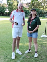 In the knock-out semi-finals Nick had a fairly comfortable 2-0 win over Ignacio, and Tim won 2-1 in a closely-fought contest against Ian Shore. Then in the final between Nick and Tim, Nick took the first game 7-5, lost the second 6-7 and took a 3-1 lead in the decider. But then Tim switched into top gear by winning the next four hoops, including running hoop 6 from 20 yards away and then hoop 7 from the north boundary right down to hoop 8. Nick was unable to recover from his subsequent 3-5 deficit and Tim emerged the winner on 7-5.